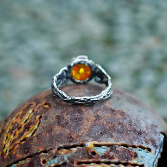 Radiant Amber Floral Silver Ring