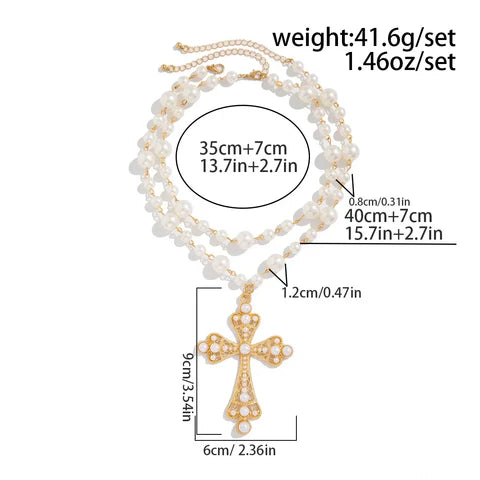 The Empowerment Pearl & Gold Cross Necklace is your ideal companion, perfectly tailored to complement every facet of your life.