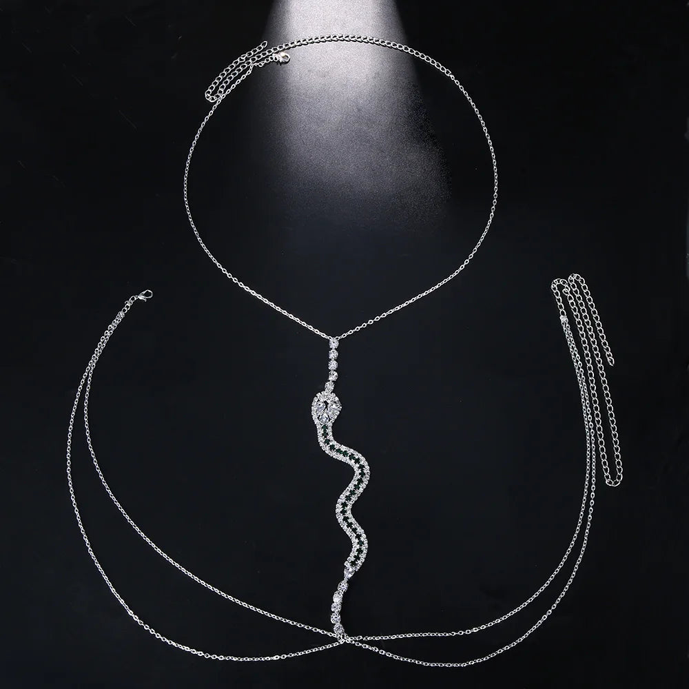 - Luxurious green crystal snake necklace available in Silver or Gold.