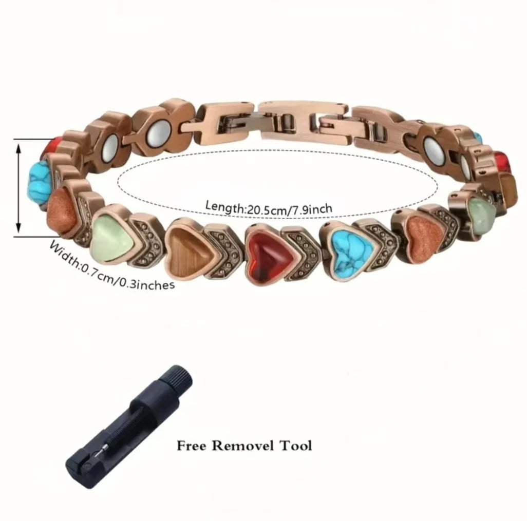 Experience the healing power of nature with our magnetic copper bracelet, exquisitely crafted to relieve your discomfort and adorn your wrist with elegance. Featuring powerful magnets and pure copper, it's more than just an accessory—it's a pathway to wellness. Complete with an adjustable fit and stunning stones, this bracelet is designed to be cherished forever.
