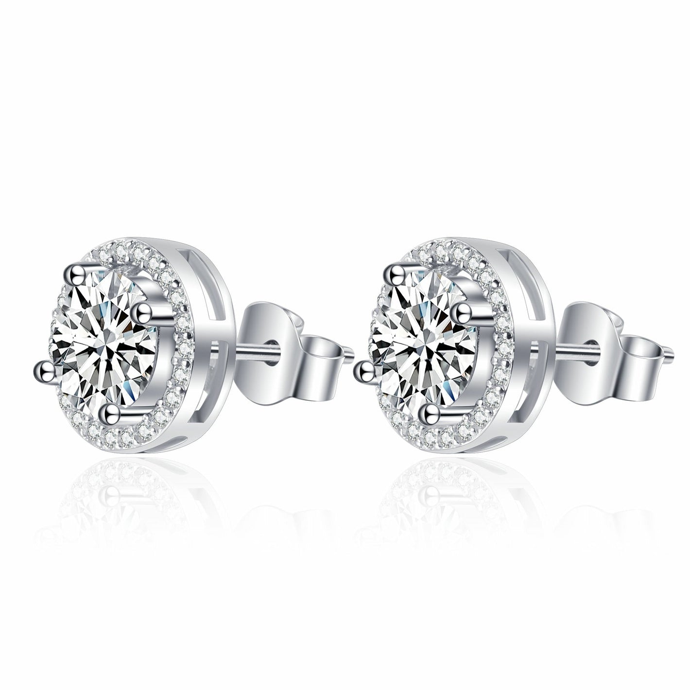 Elegant moissanite earrings blend timeless beauty with modern charm. Crafted with solid silver and platinum plating, these studs boast a central moissanite, surrounded by a halo of brilliance. Ideal for any occasion, they're designed to catch the eye and captivate the heart.