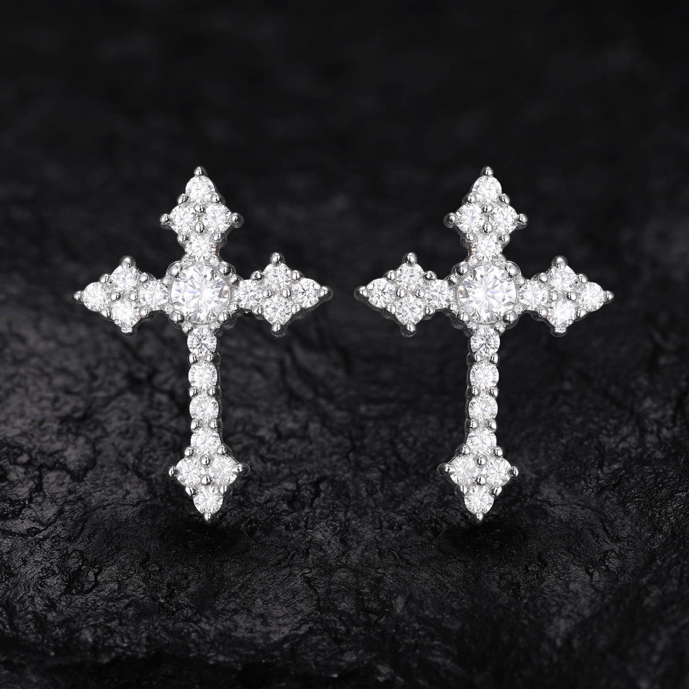 Experience sophistication with our Timeless Affordable Moissanite Cross Earrings. Crafted from 925 sterling silver, they showcase D Color VVS1 Moissanite stones that mirror diamond brilliance. Perfect for both him and her, elevating any jewelry collection.